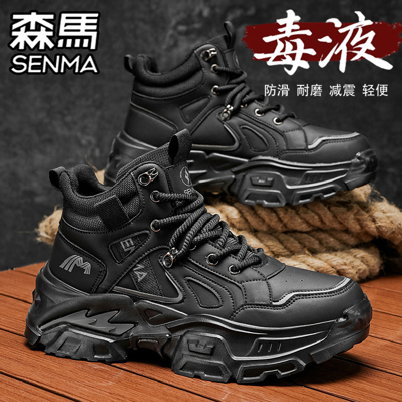 靴 高帮防水防滑户外登山运动厚底增高劳保工装 森马马丁靴男鞋 秋季