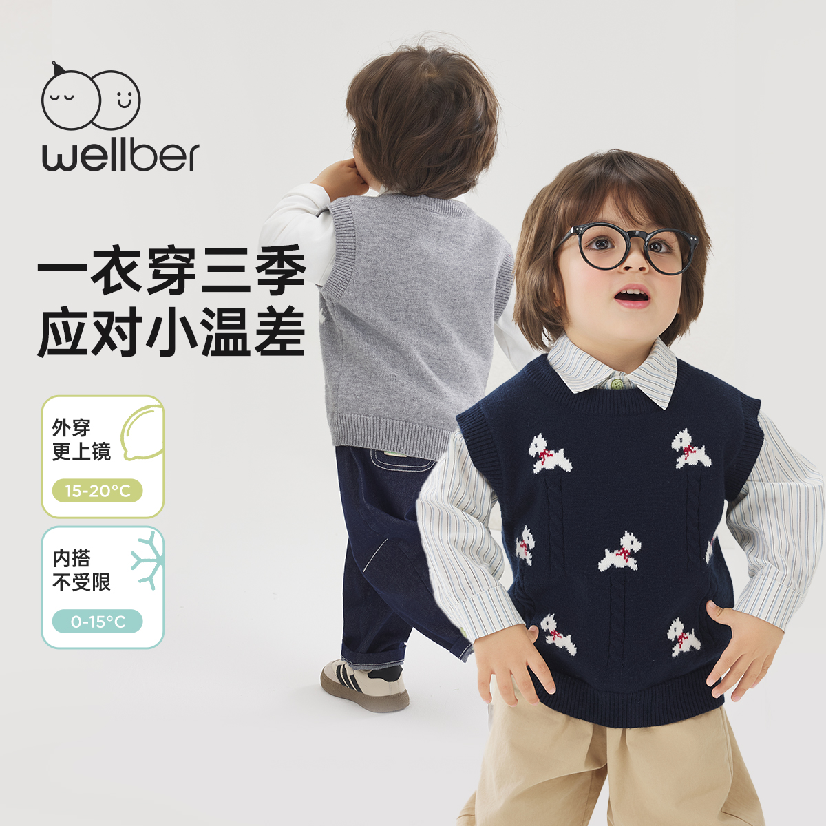 威尔贝鲁儿童毛衣针织马甲背心2025新款 洋气时髦 男女童宝宝早秋装