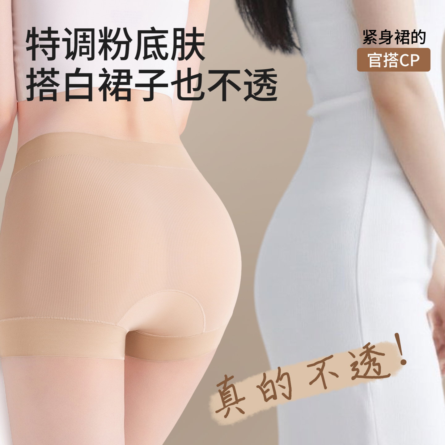 二合一打底内裤 草本初色无痕防走光粉底液平角裤 女冰丝抑菌安全裤