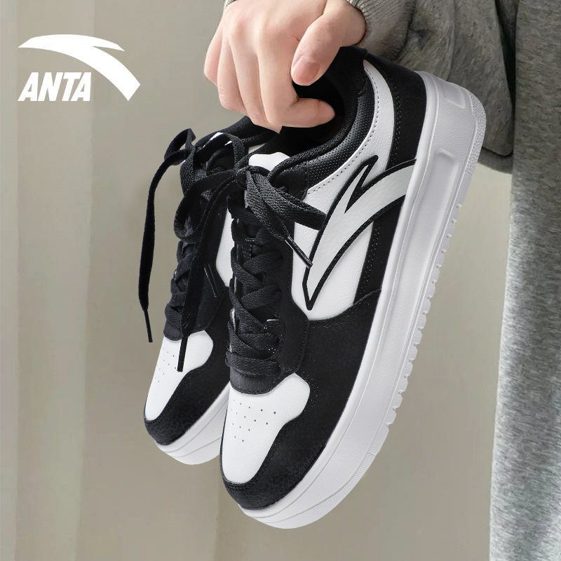 女鞋 子轻便运动鞋 2025秋季 黑白熊猫鞋 潮流百搭小白鞋 安踏轻松板鞋