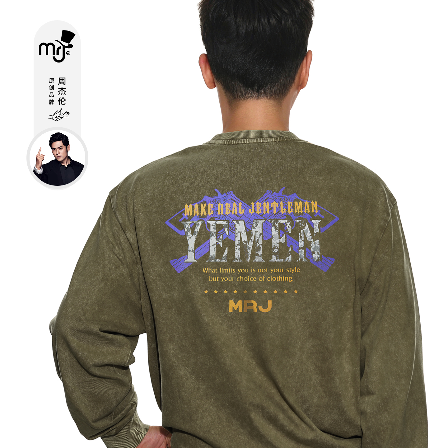 全棉扎染潮流时尚 MRJ周杰伦美式 春秋季 t恤男款 百搭上衣服 复古长袖