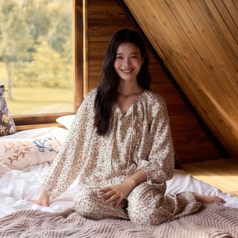 TALASA居家一公里系列家居服女2025秋冬新款 纯棉小碎花印花可外穿