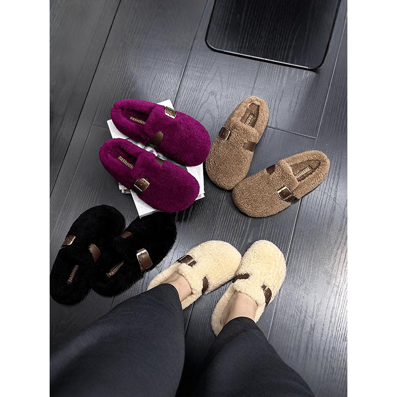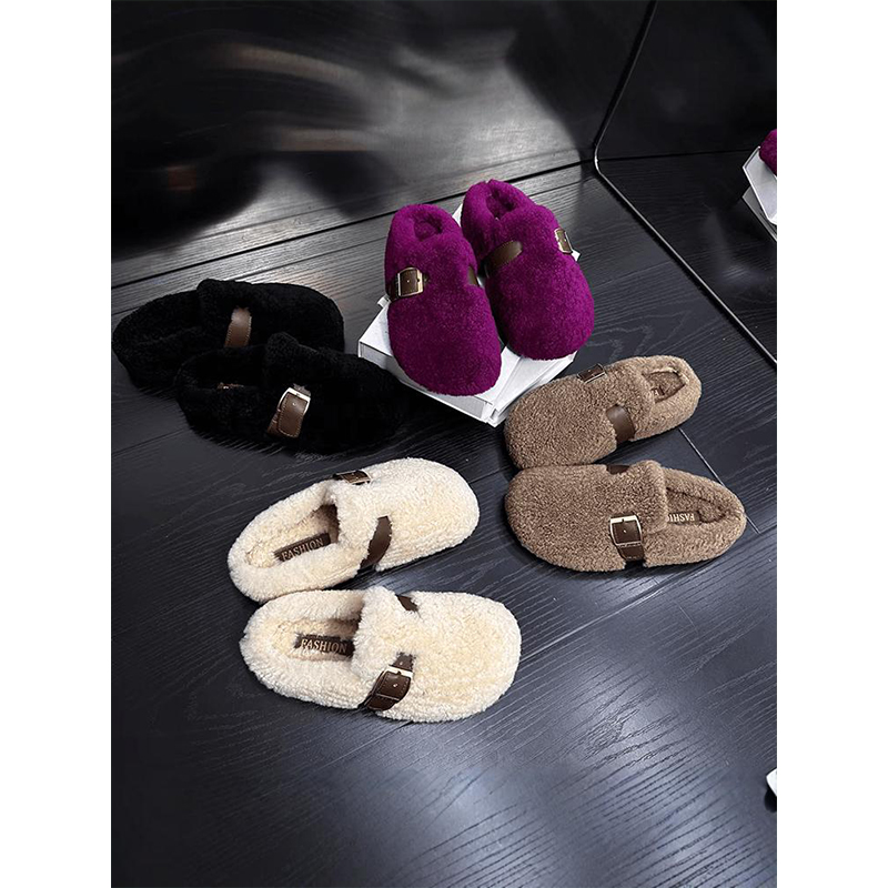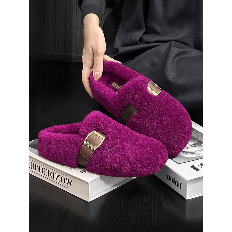 网红厚底羊羔毛毛拖鞋 一脚蹬毛绒棉拖家居 女包头外穿2025秋冬新款