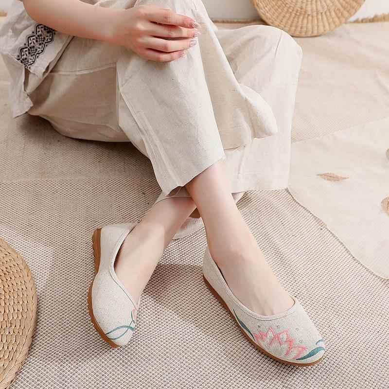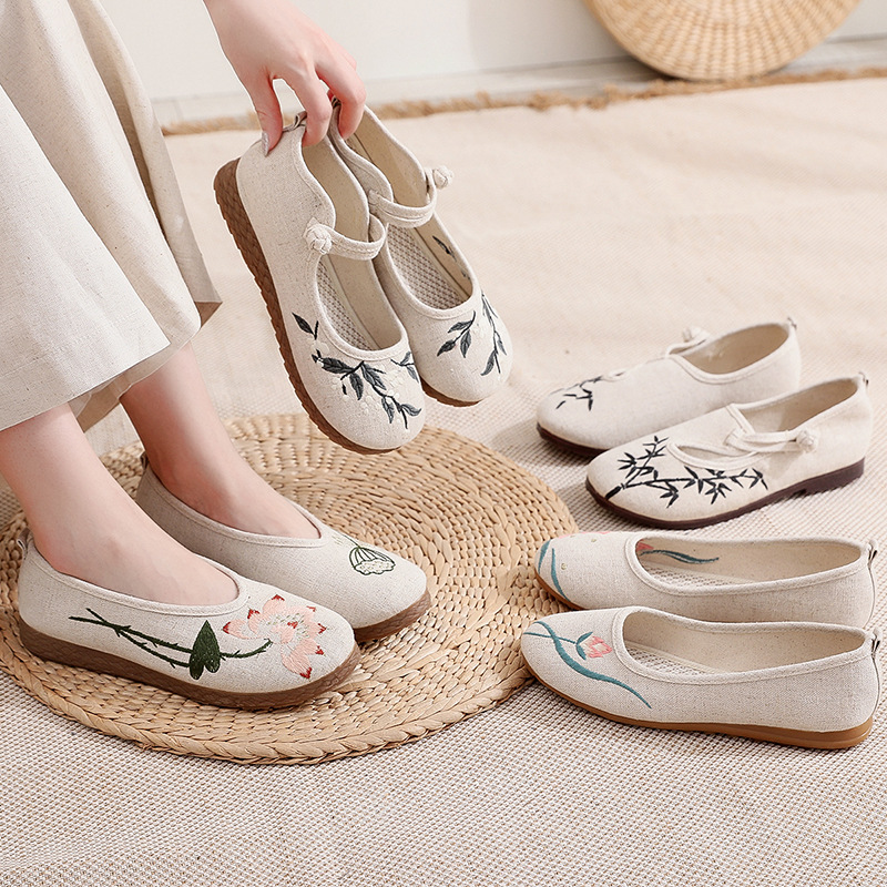 女款 茶艺师单鞋 刺绣花鞋 子古风汉服鞋 平跟浅口老北京鞋 民族风布鞋
