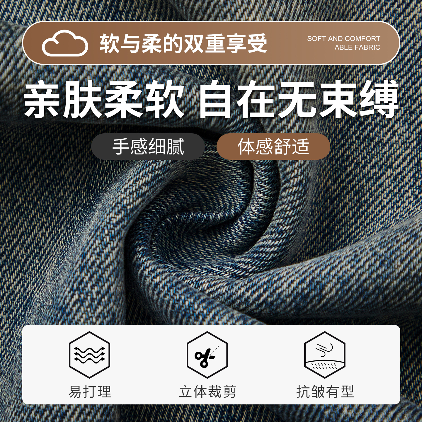 cleanfit百搭直筒长裤 男秋款 潮 高街竹节纹微喇牛仔裤 QUALCOMM美式