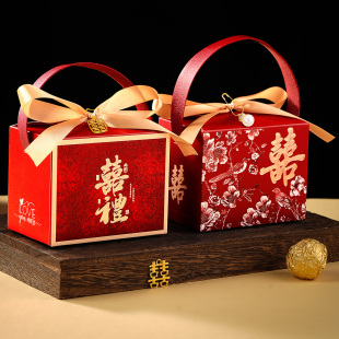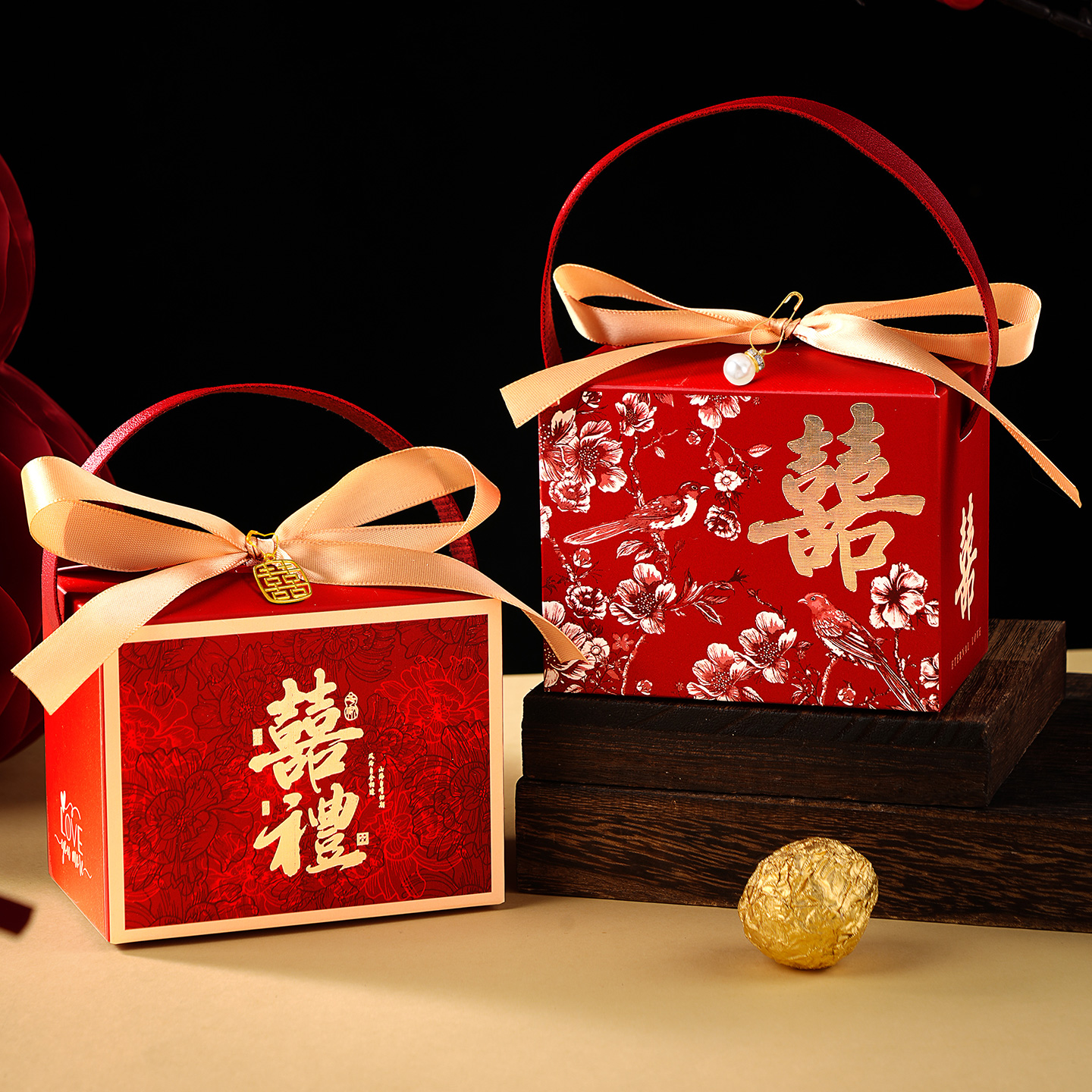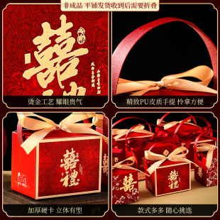 红色拉菲草结婚喜糖盒礼物盒伴手礼喜庆装 饰配件拉菲草填充物