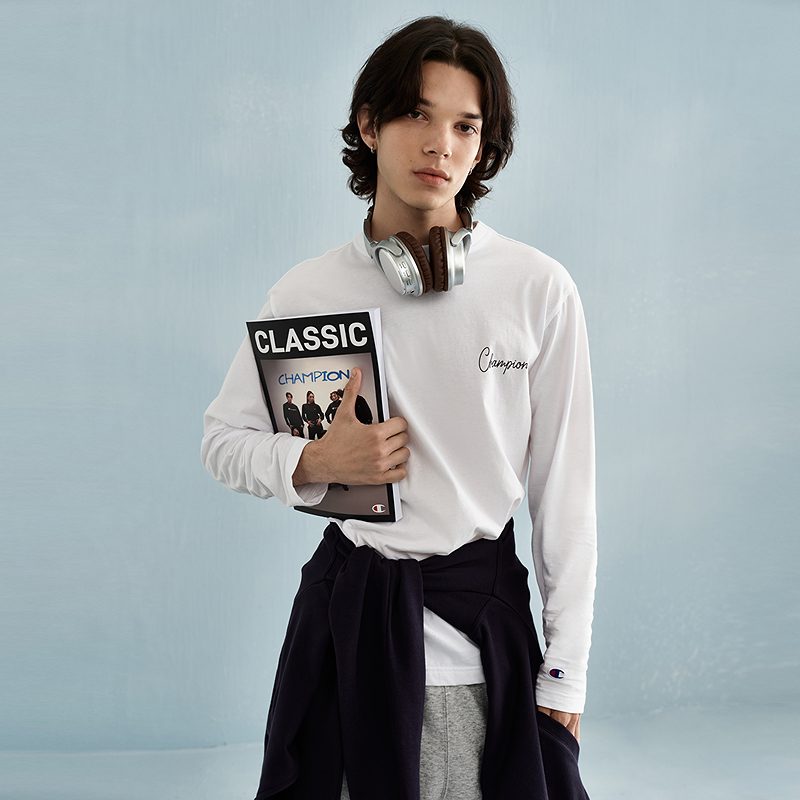 Champion冠军长袖 纯棉打底上衣潮圆领刺绣女简约 T恤男春秋新款