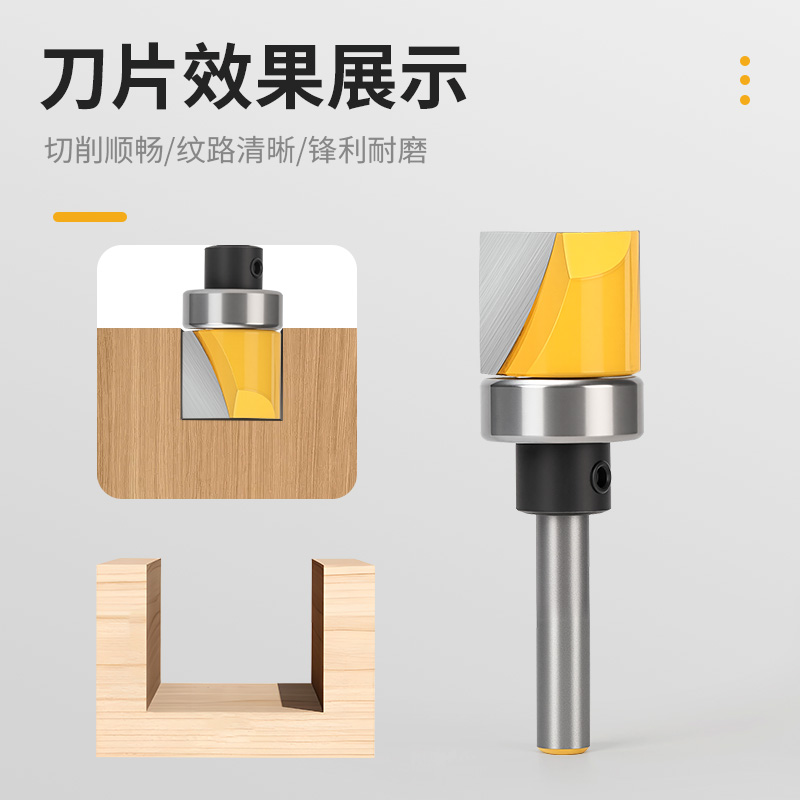 清底刀轴承平底刀头木工铣刀具仿形柄带轴承修边刀开孔开槽木板
