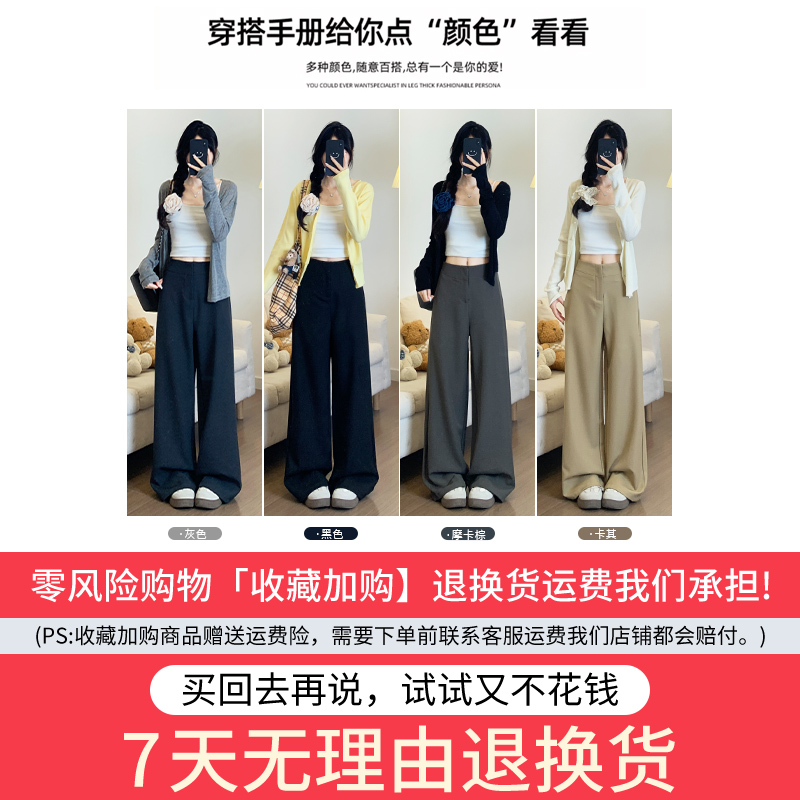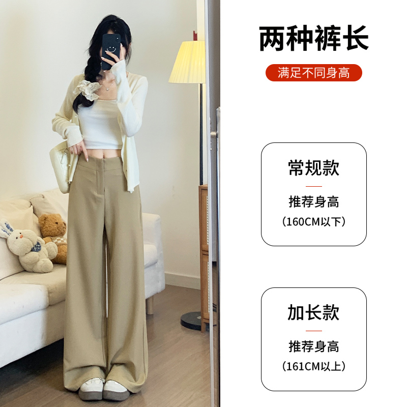 高腰垂感显瘦老钱风垂感休闲裤 卡其色西装 2025新款 女春秋季 阔腿裤