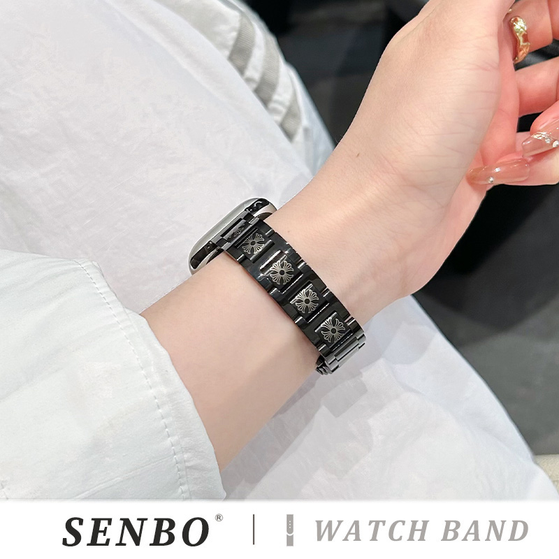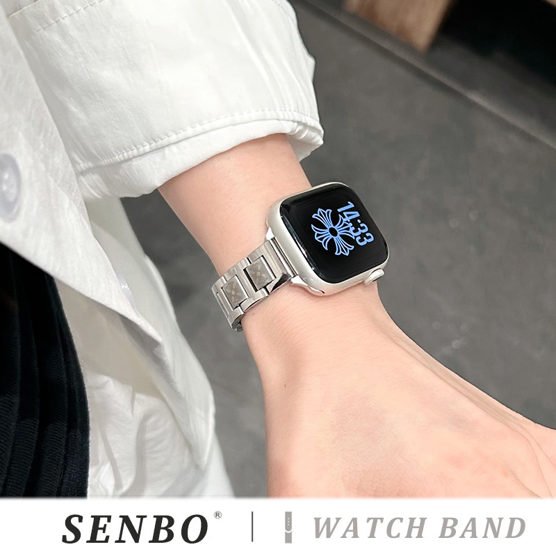10手表带秋季 5金属运动se代男女款 s9克罗心表带applewatch8新款 高级腕带 三株不锈钢7 适用于苹果iwatch11