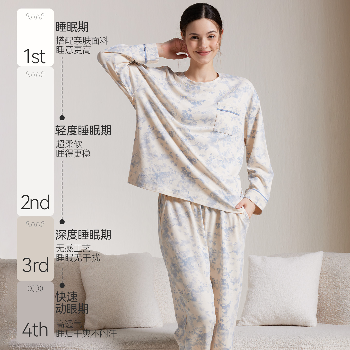 家居服 纯棉舒适山水飞花系列可外穿秋冬季 婷美睡衣女款 2025新款
