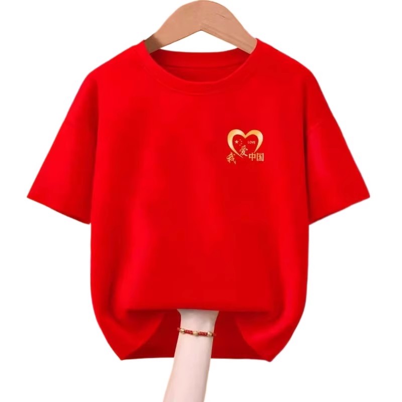 小学生中国风儿童团体表演服 亲子装 红色纯棉短袖 T恤我爱国潮夏季