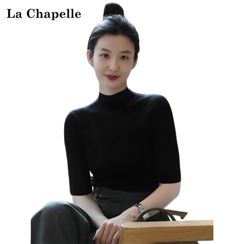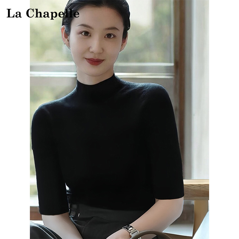 内搭上衣中袖 大码 毛衣女短袖 针织打底衫 t恤胖mm春秋 半高领五分袖