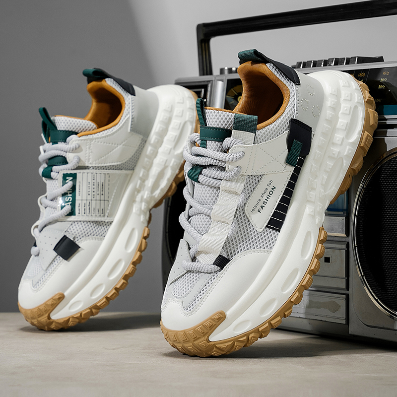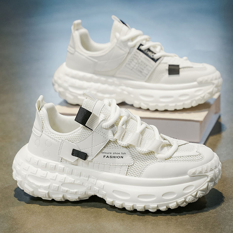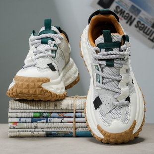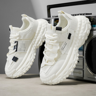 男鞋 秋冬网面百搭休闲青少年运动跑步轮胎厚底内增高白色老爹潮鞋