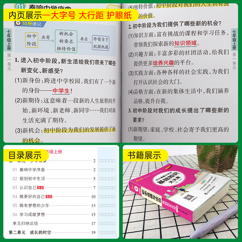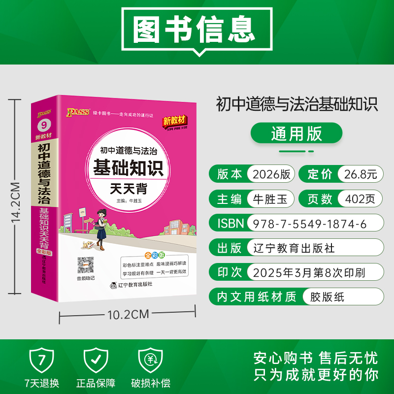 2026新版 初中生初一初二初三汇总热点考点大全速记小册子口袋书中考总复习资料 pass绿卡初中道德与法治基础知识天天背人教版