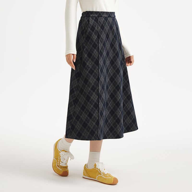 复古格纹半身裙女高腰小个子时尚 新款 短裙 BABY2025年秋季 BANANA