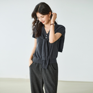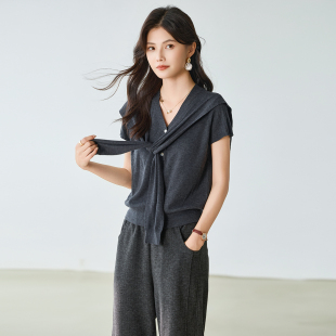修身 针织衫 2025新款 妖精 薄款 绵羊毛 早秋穿搭打底衫 上衣 口袋