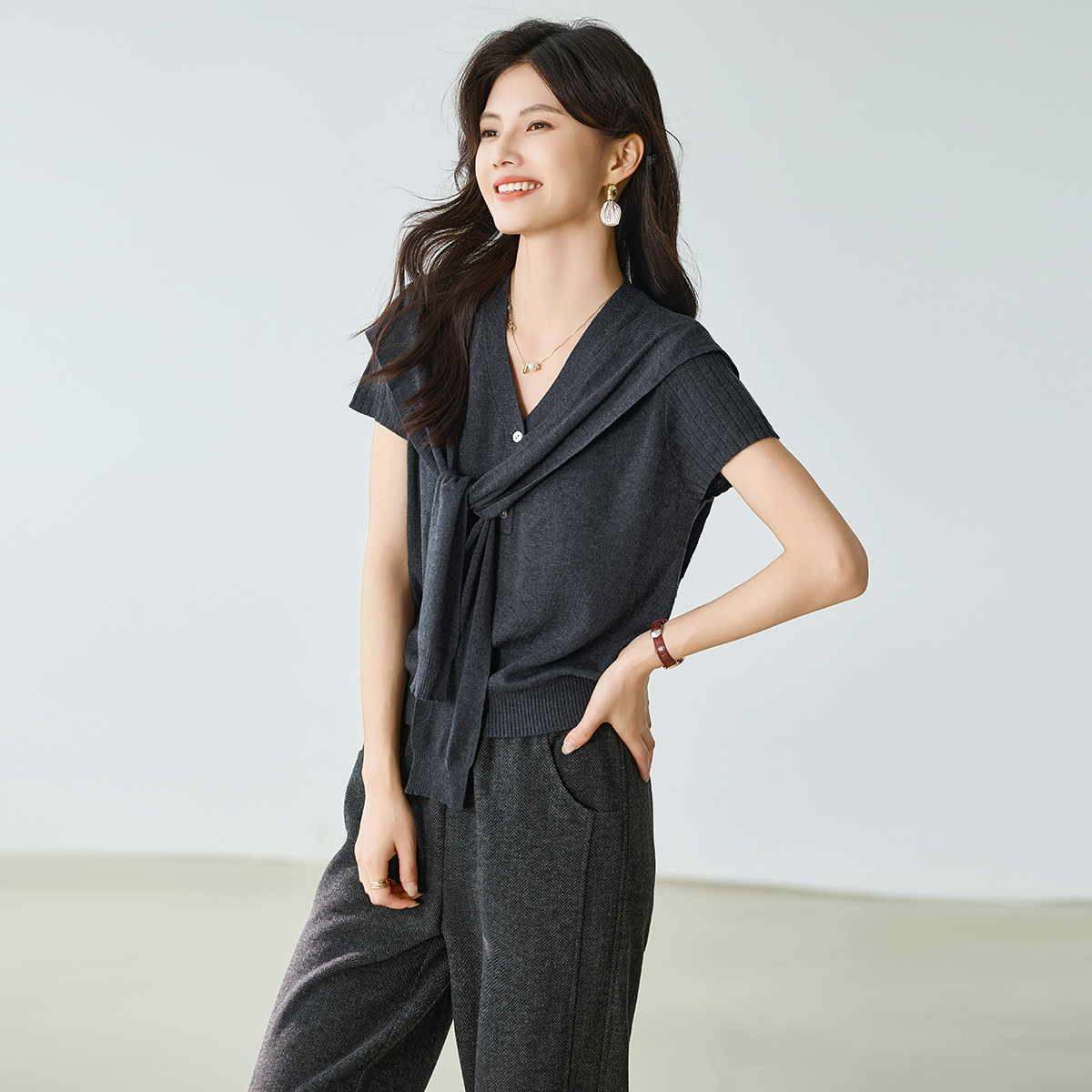 显瘦中领针织衫 半高领无袖 内搭坎肩修身 灰色西装 背心女羊毛打底衫