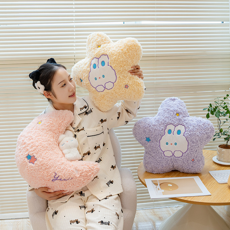 ins风星星月亮公仔抱枕男女孩睡觉布娃娃小兔子玩偶毛绒玩具靠垫