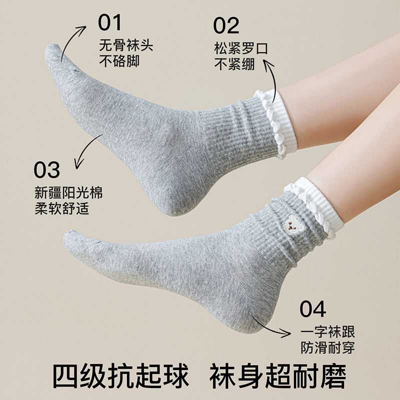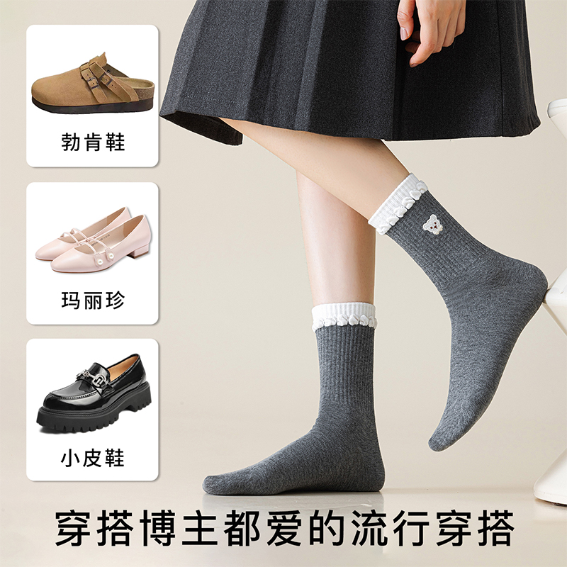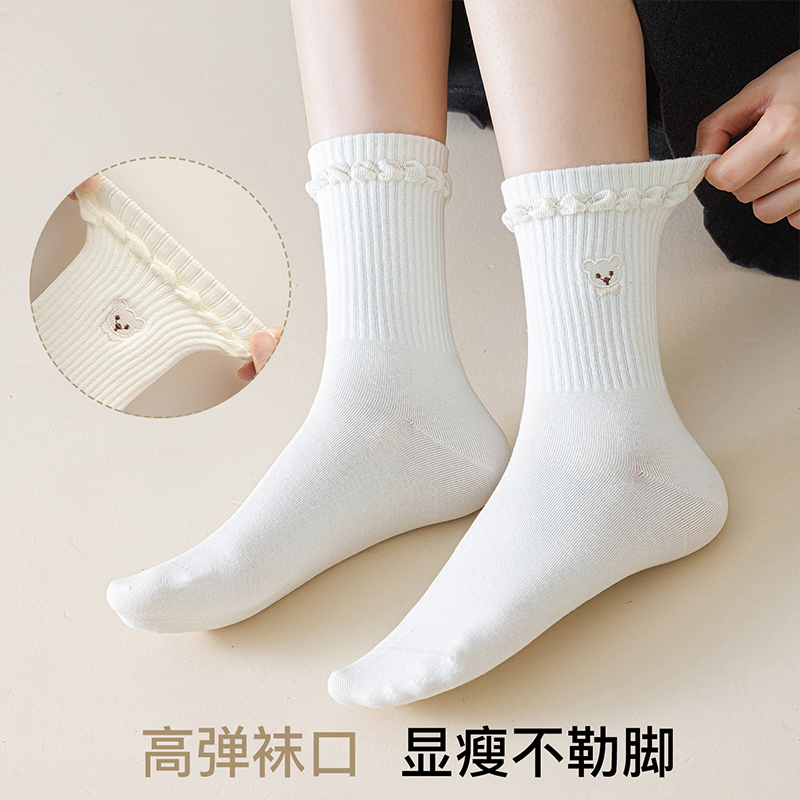 纯棉中筒袜可爱卡通长袜花边堆堆袜 春秋季 小熊袜子女2025新款 爆款