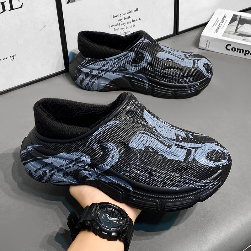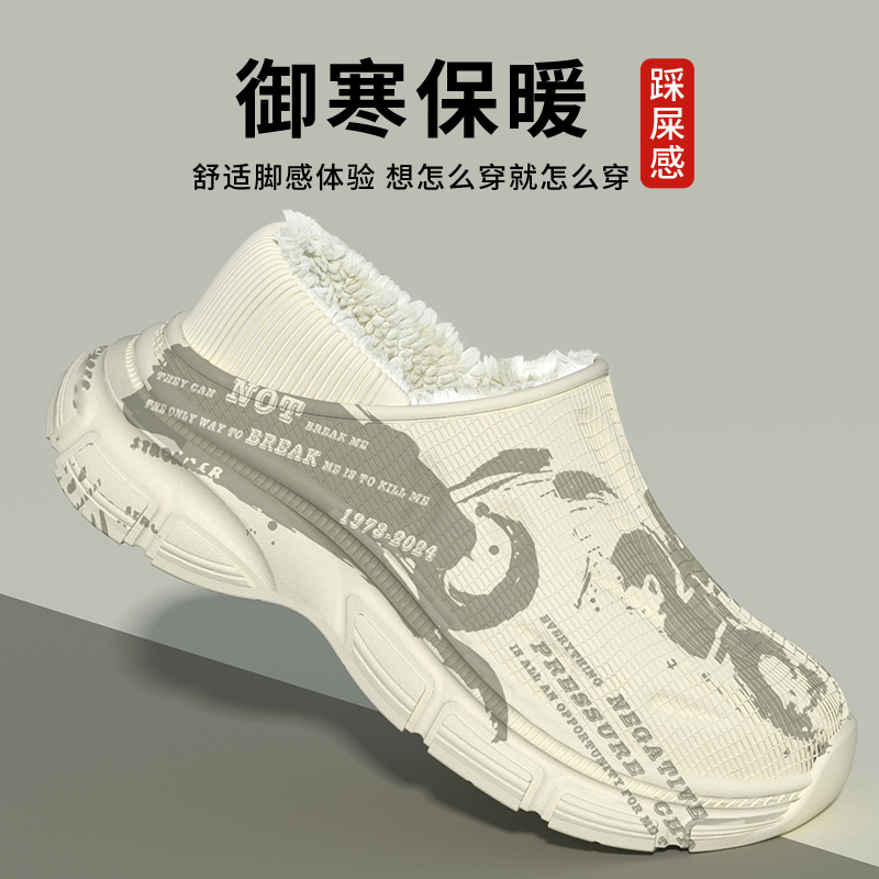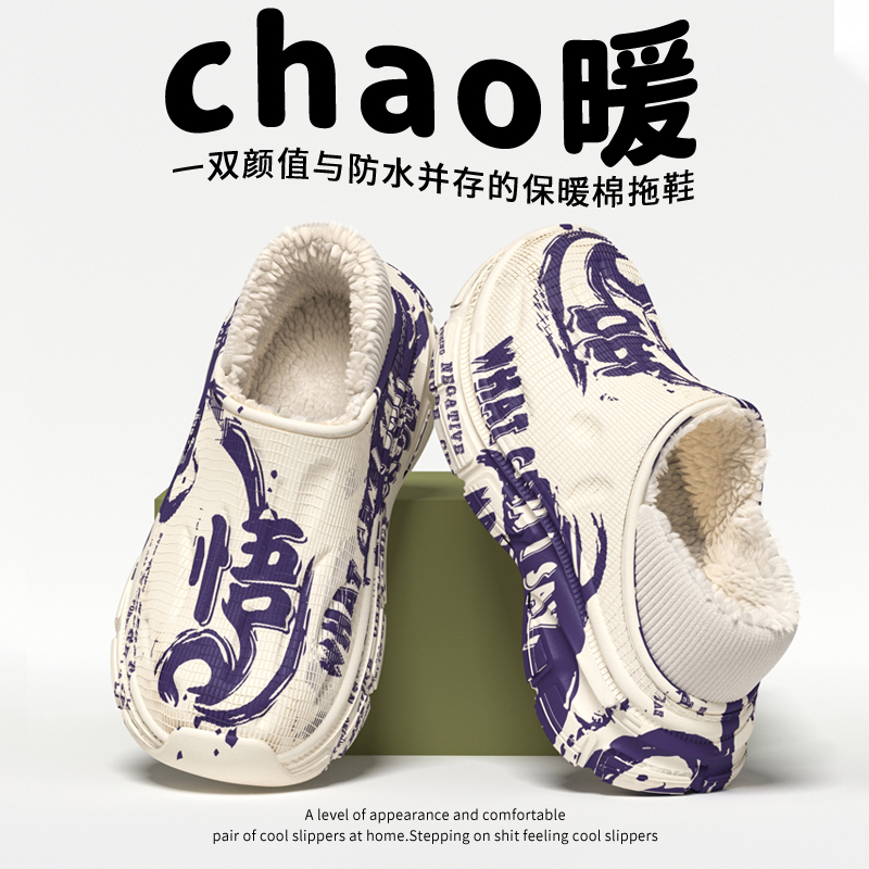 外穿加绒拖鞋 棉拖鞋 防滑防水室内居家用包跟棉鞋 2025新款 男秋冬季