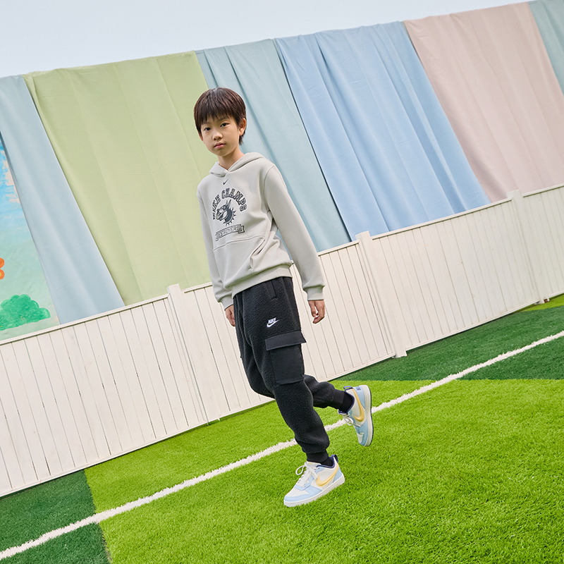 男女童轻便叠搭舒适NIKE 新款 IO7906 冬季 耐克大童加绒套头连帽衫