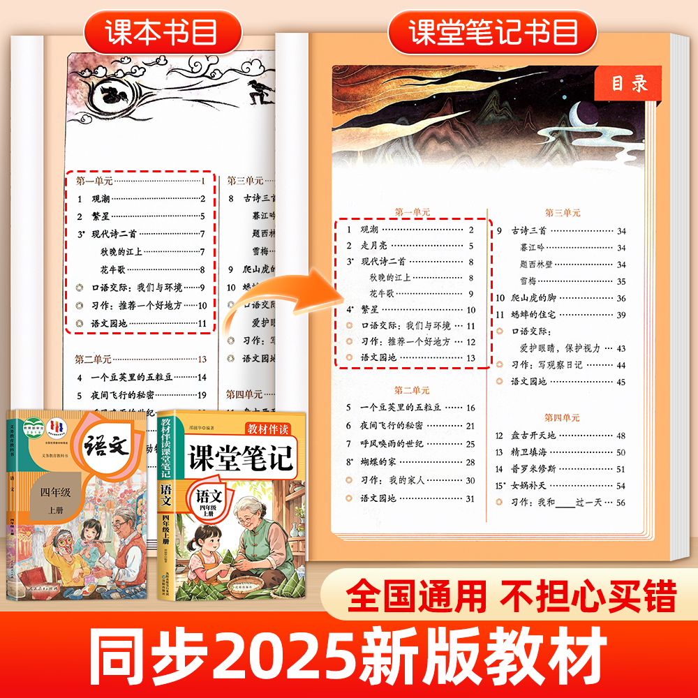 黄冈学霸课堂笔记全套 同步课本预习四上辅导资料书小学教材同步解读正版 2025年新版 四年级上册课堂笔记语文数学英语人教版