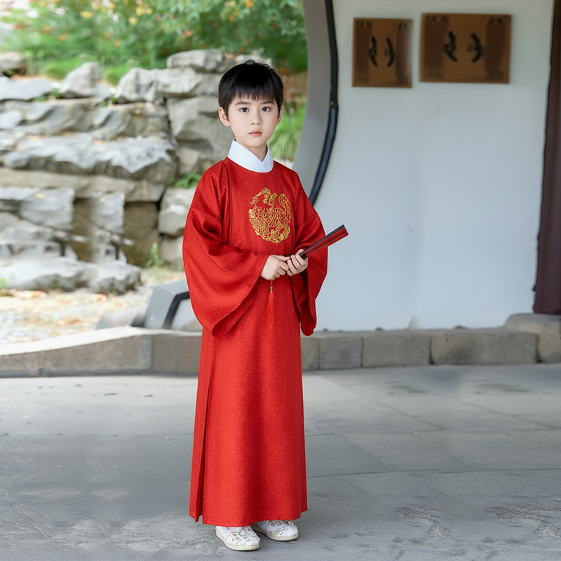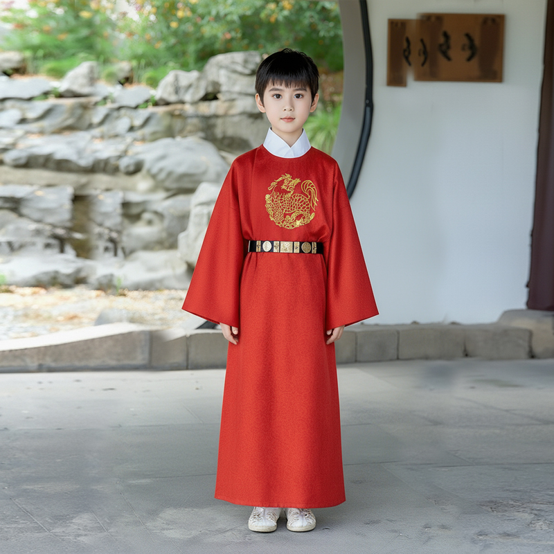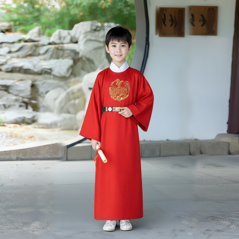 新款 儿童汉服男童圆领袍官服古风长袍中国风红色国学服书生才子服