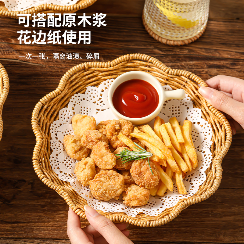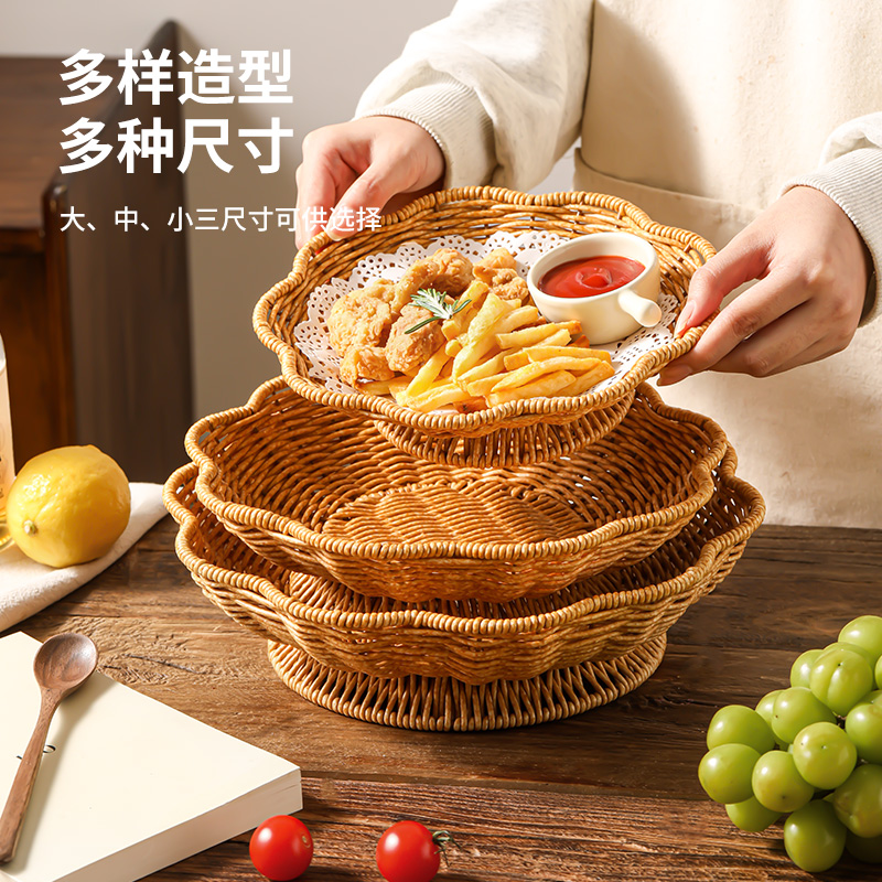 零食点心摆放盘茶点水果篮藤编高脚托盘家用客厅小吃面包篮干果盘