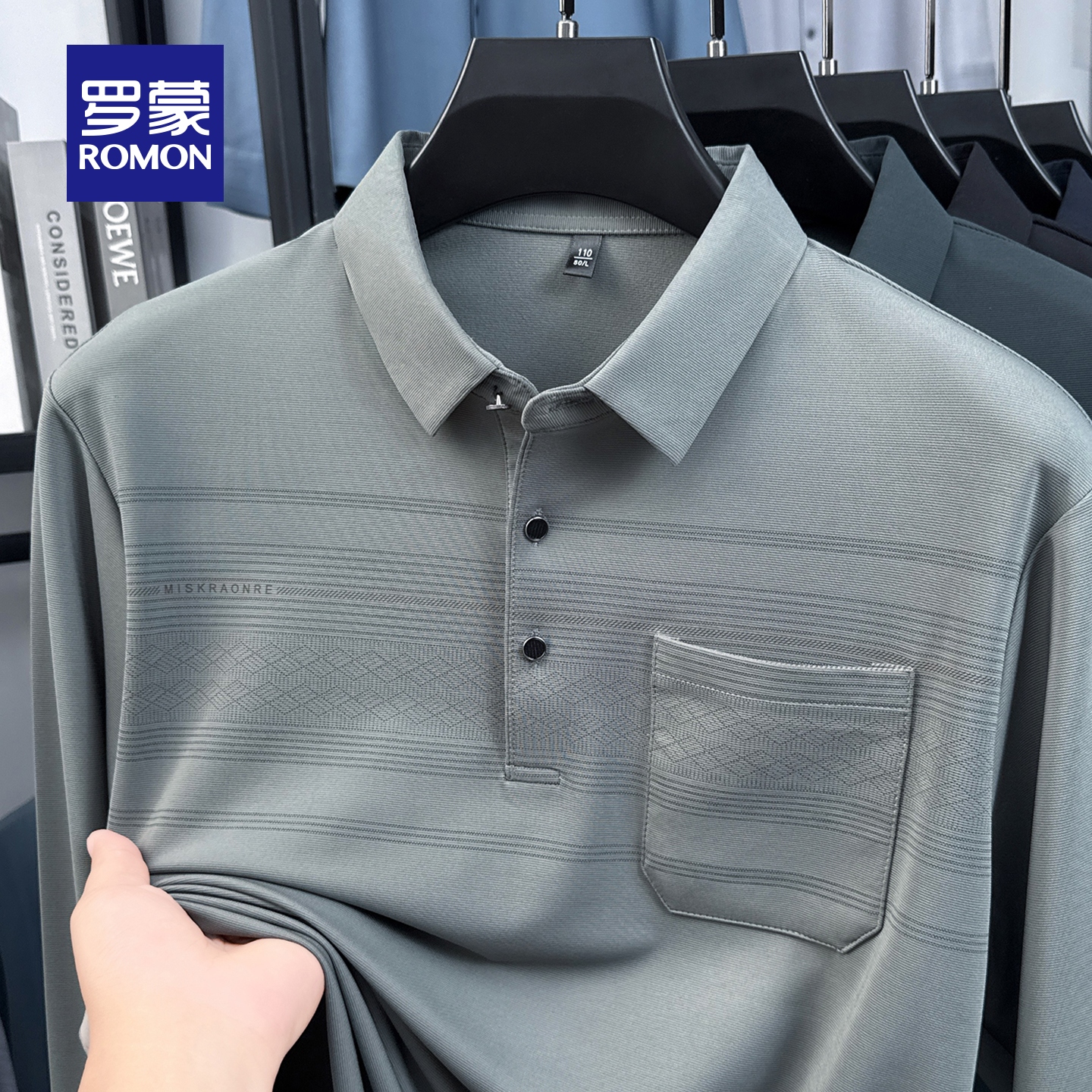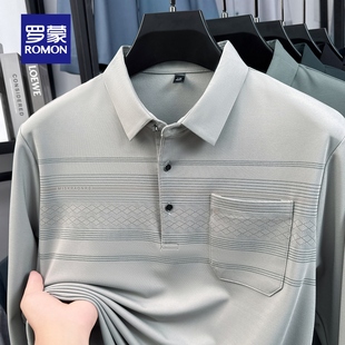 polo衫 商务休闲宽松纯色大码 男士 新款 t恤上衣男 2025秋季 罗蒙长袖
