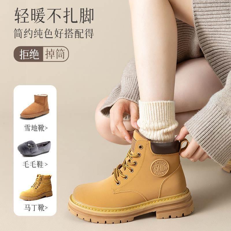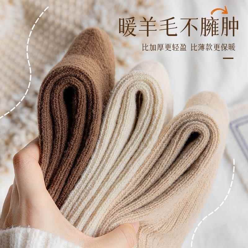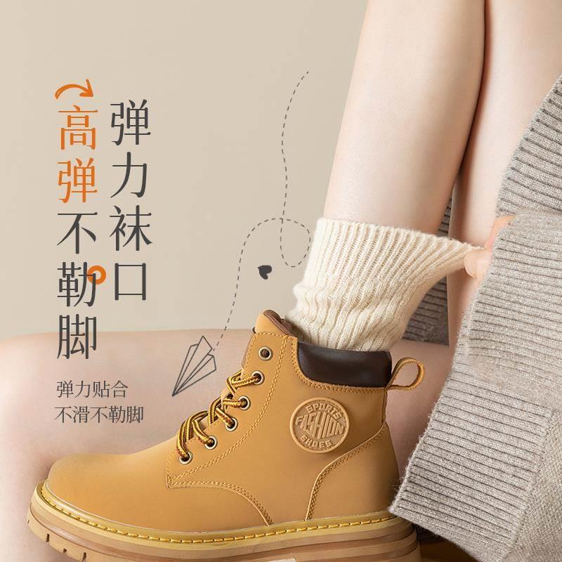 配马丁靴羊毛袜子女冬季 长筒堆堆袜冬天睡眠月子长袜 中筒保暖薄款