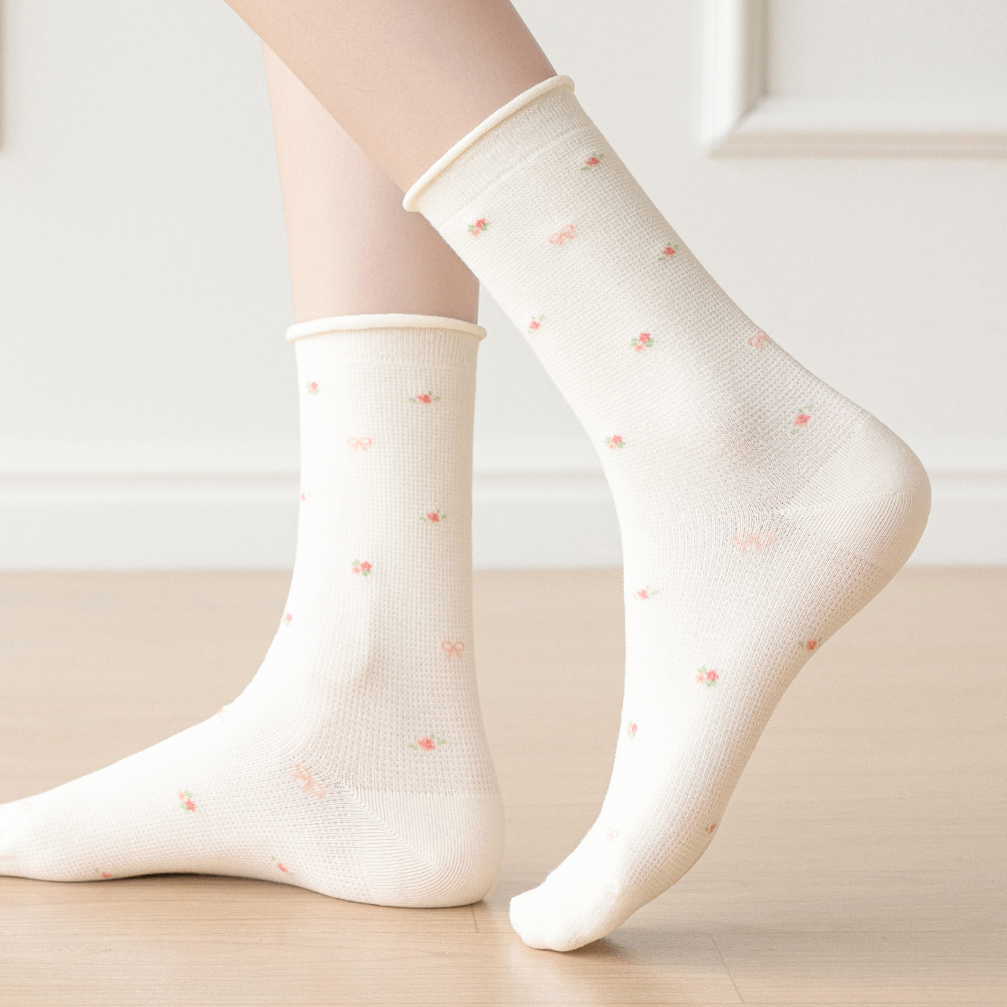 爆款 2025新款 春秋中筒袜无骨月子袜白色堆堆袜搭配小皮鞋 袜子女款