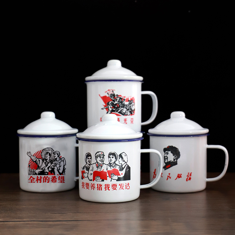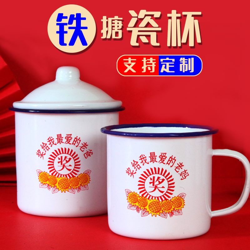 大号巨无霸水杯定制马克杯 泡茶缸子男生款 带盖搪瓷杯怀旧经典 老式