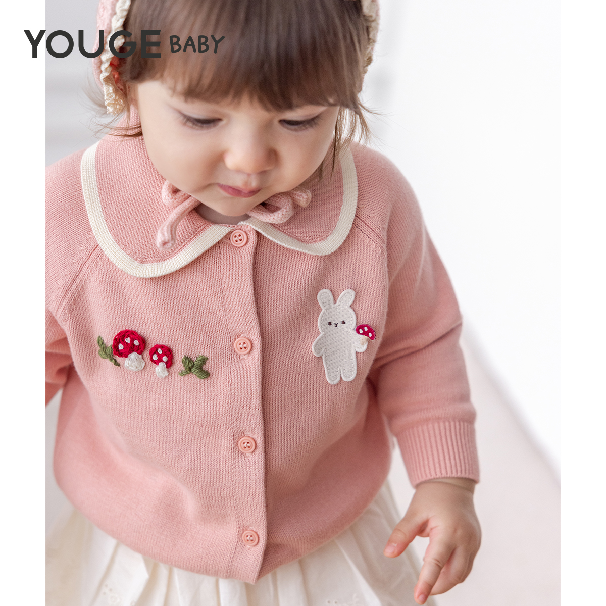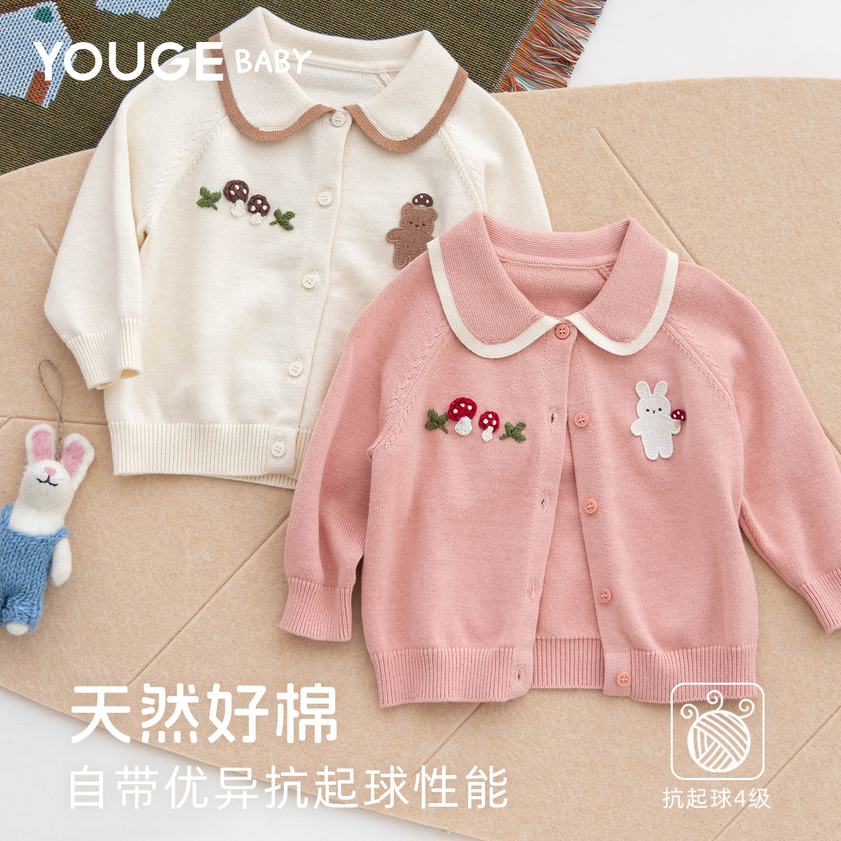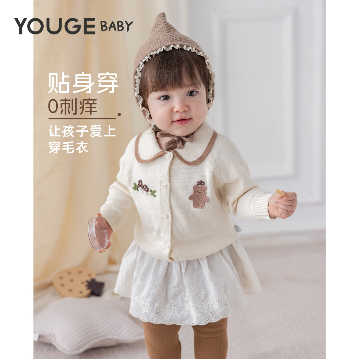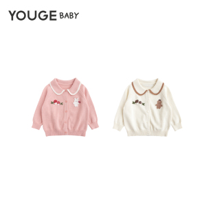 萌趣娃娃领毛衣开衫 新款 宝宝亲肤抗起球上衣 婴幼儿秋季 YOUGE幼歌