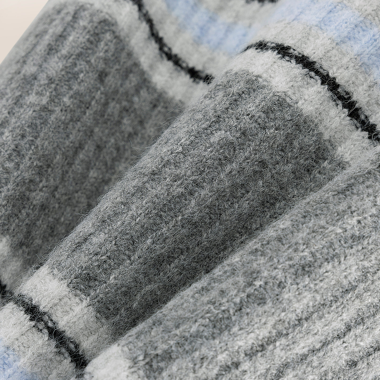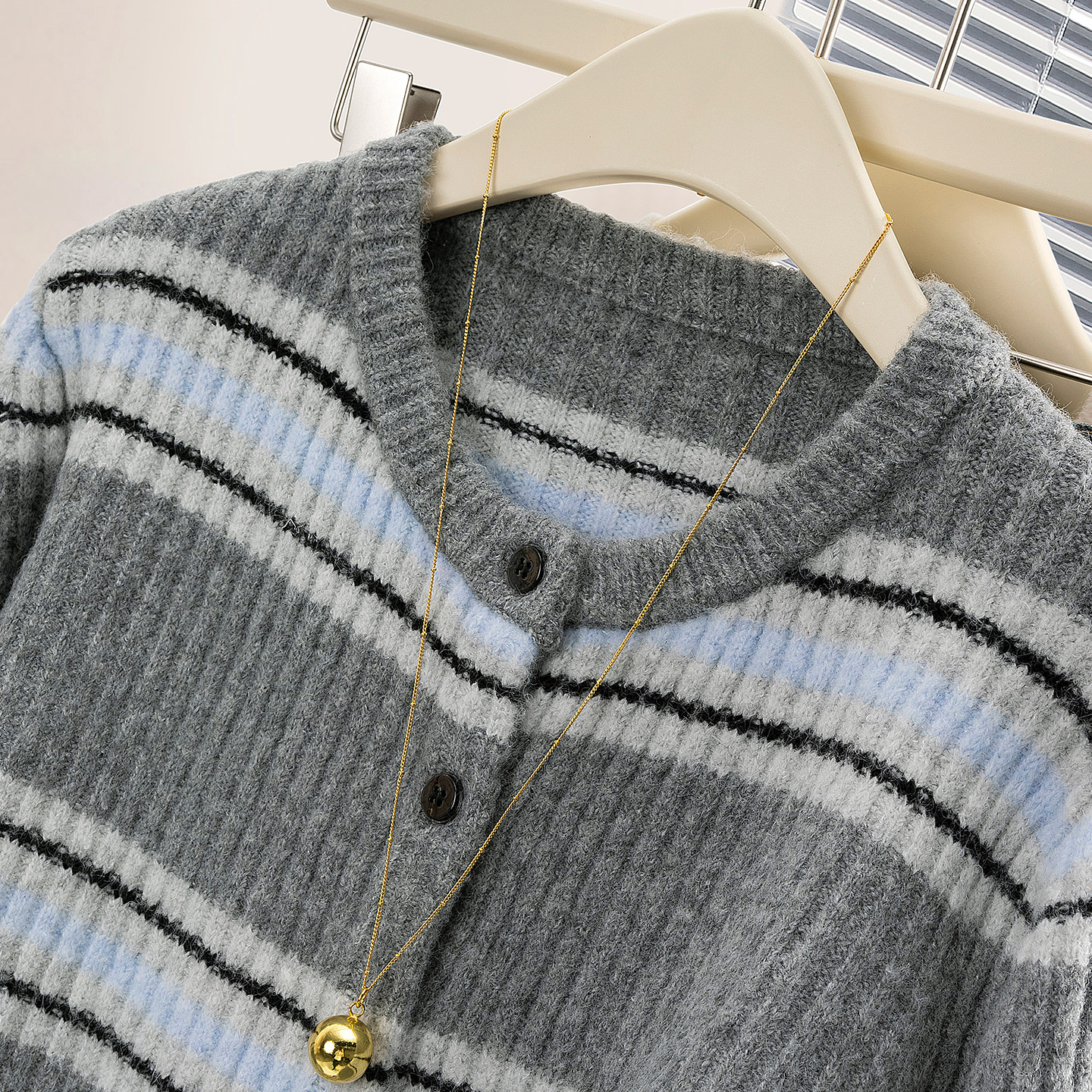 2025秋装 长袖 新款 撞色条纹单排扣宽松款 上衣 女装 她池圆领针织衫