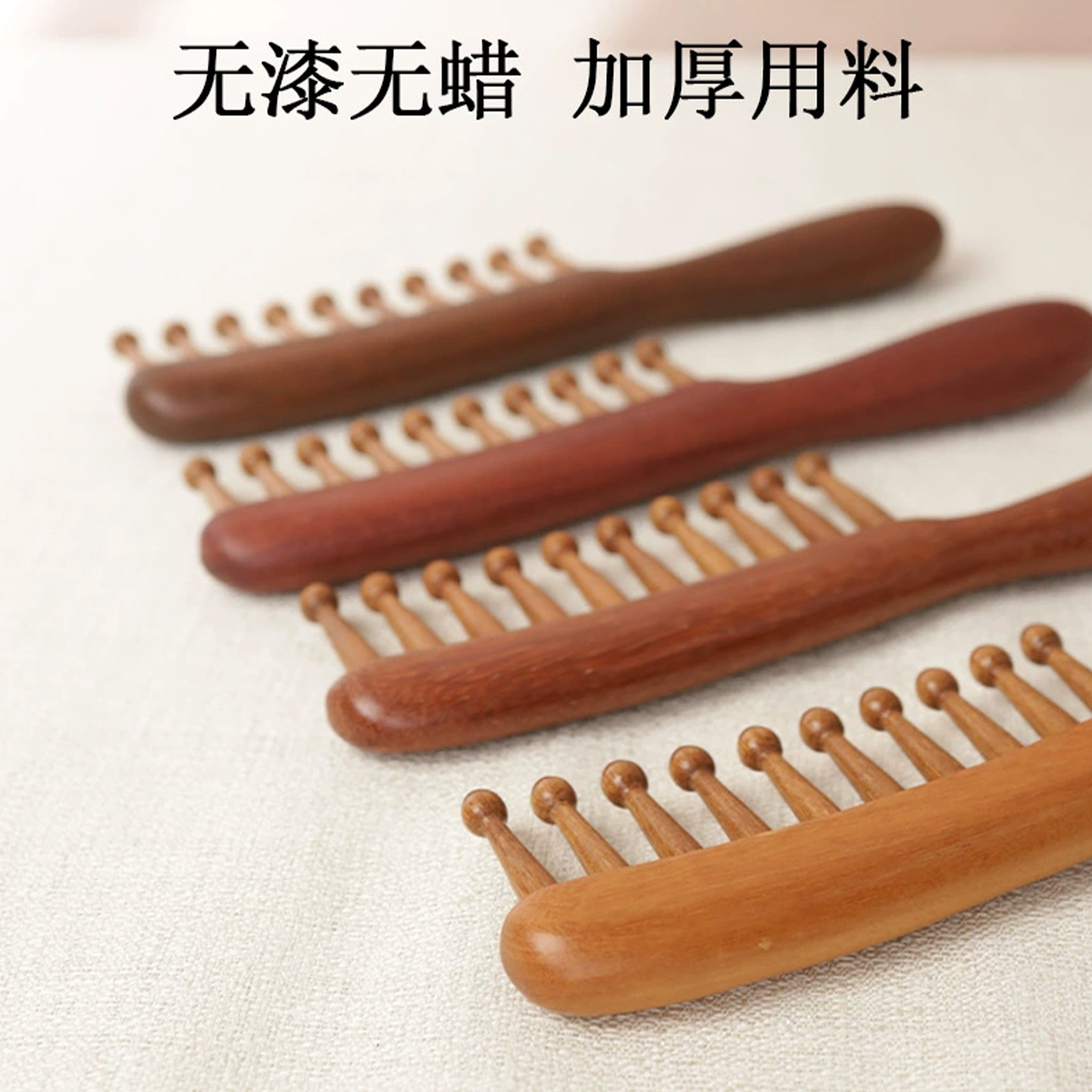 檀木梳子头部按摩梳长直发大波浪卷发头皮头疗养生刮痧宽齿经络梳