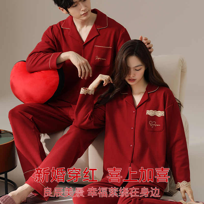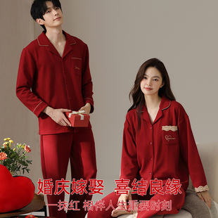红色睡衣结婚新婚情侣套装 德绒保暖内衣男高级感陪嫁物品女方全套