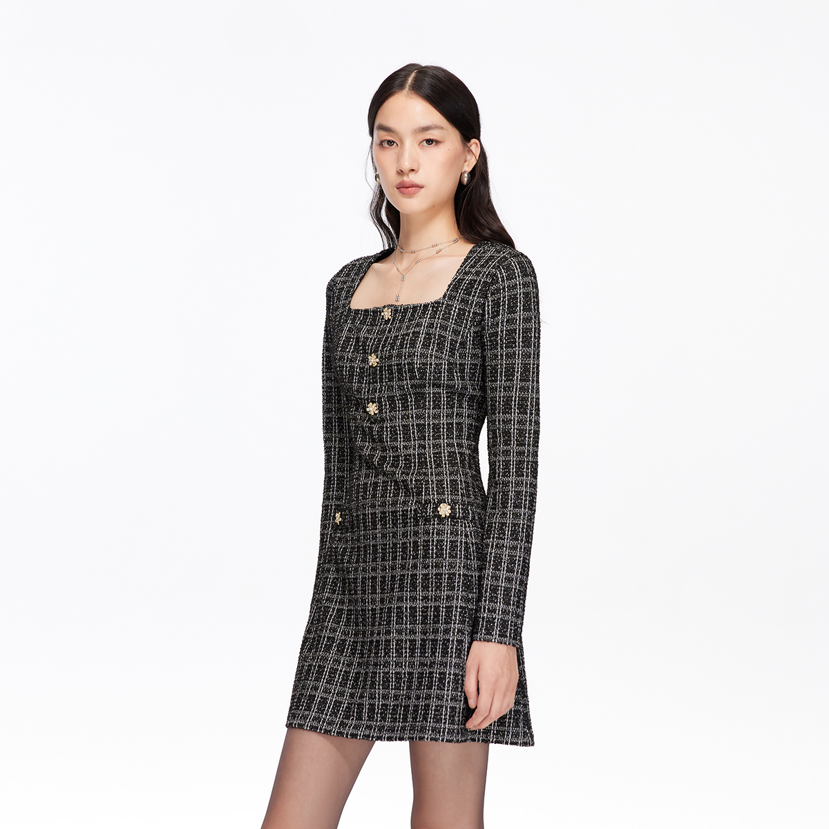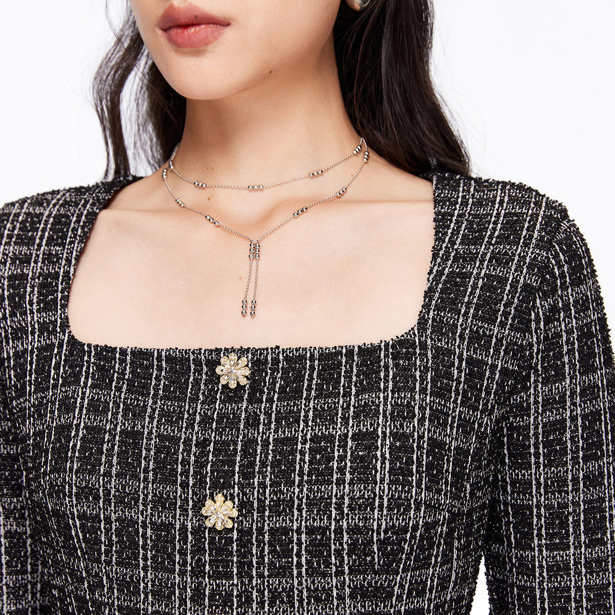 饰领口收腰A字短裙优雅千金风 亮片装 Vero Moda连衣裙2025秋冬新款