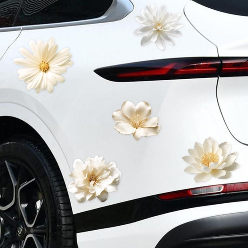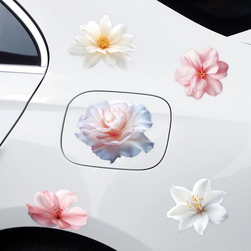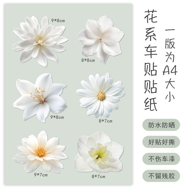 立体创意白色花朵汽车贴画划痕贴纸电动车个性 遮挡防水刮痕不留胶