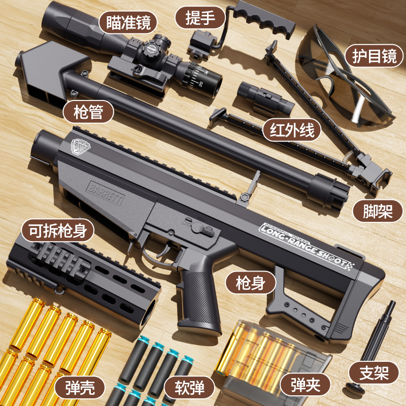 巴雷特抛壳玩具枪软弹枪儿童男孩6一9岁8M82A狙击抢步枪2025新款
