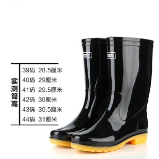 中筒耐酸碱劳保防水防滑洗车胶鞋 高筒水鞋 套脚雨靴 牛筋底男士 雨鞋