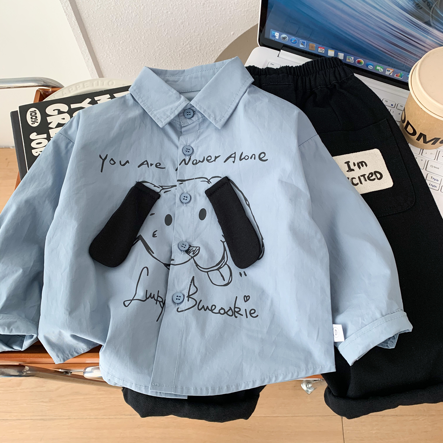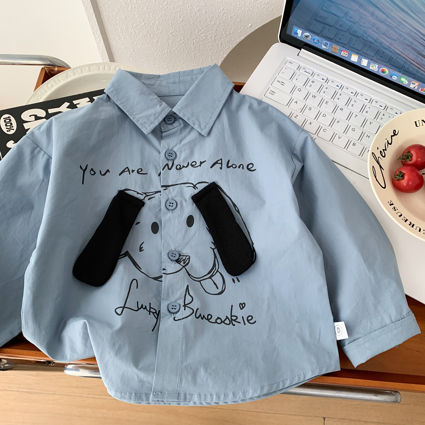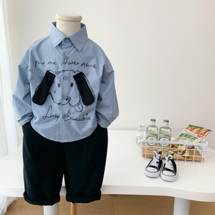 加绒加厚百搭高级感痞帅初中生 外套男春秋新款 青少年牛仔长袖 衬衫