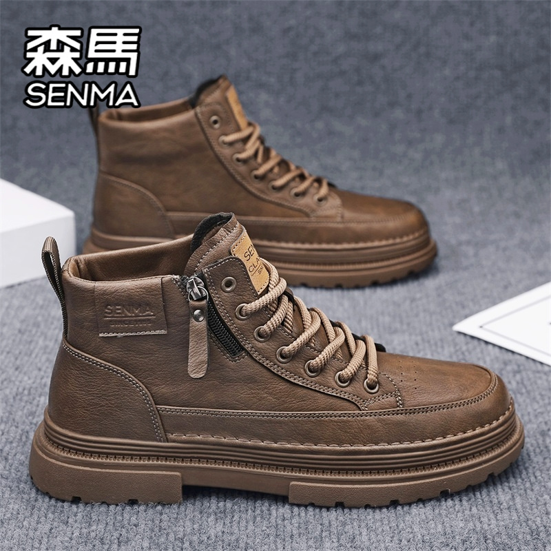 靴子 真皮防水厚底增高工装 森马马丁靴男秋季 高帮百搭休闲白色板鞋