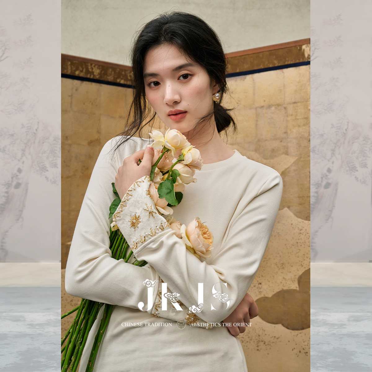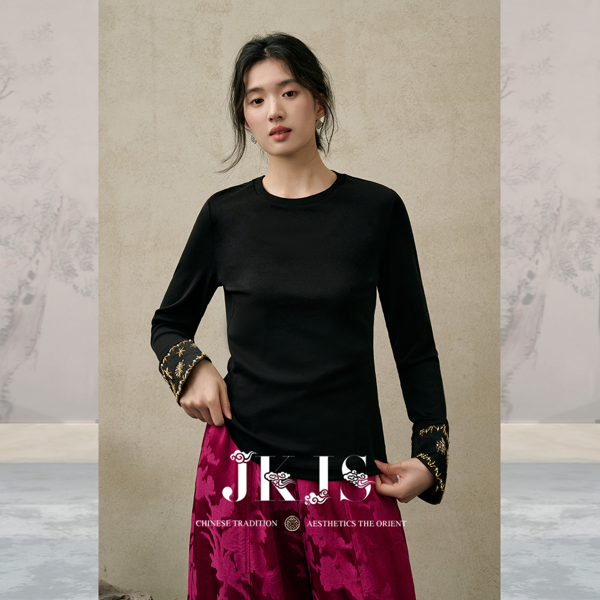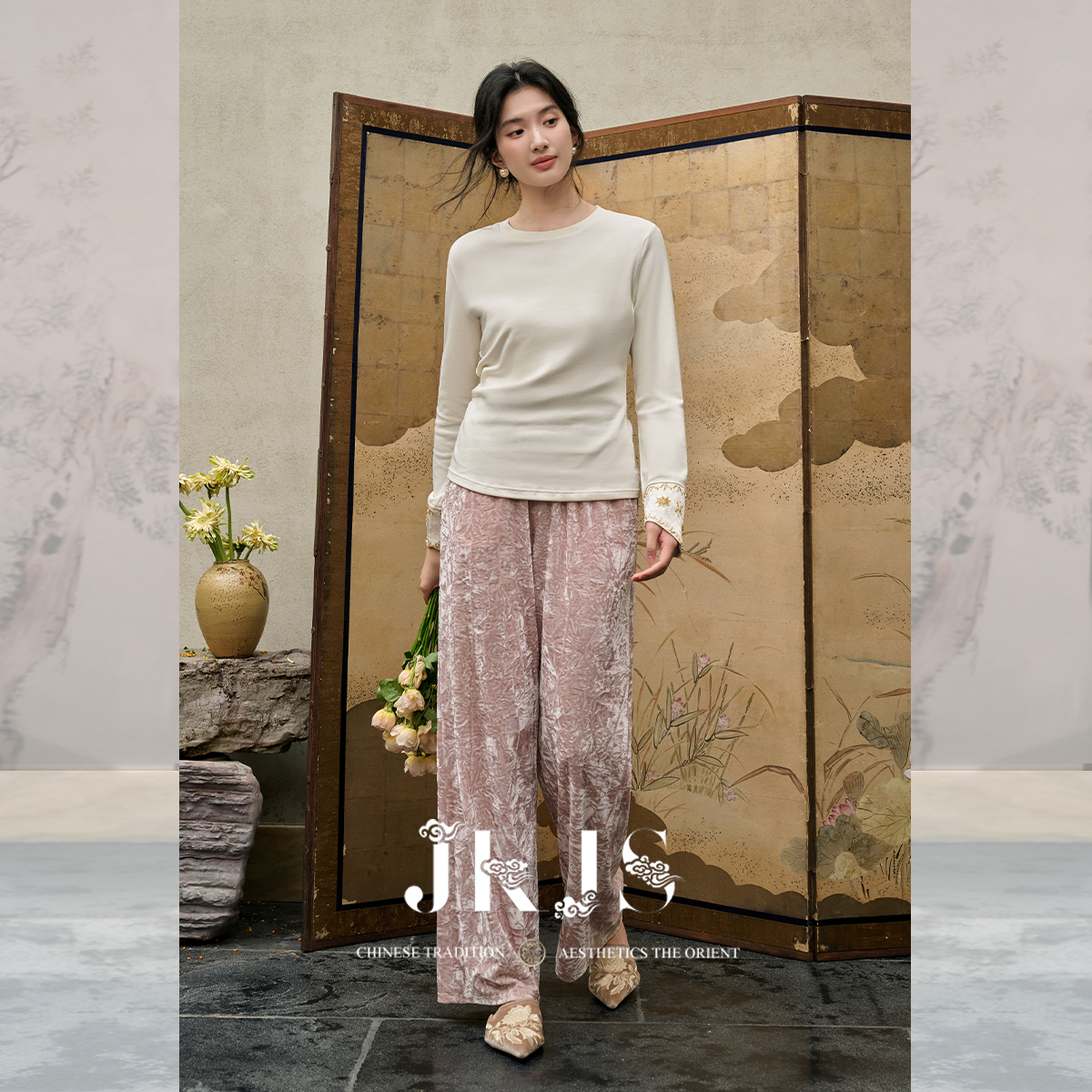 JKJS 莫代尔人丝提花T恤早秋穿搭气质女上衣高级感内搭 罗浮香