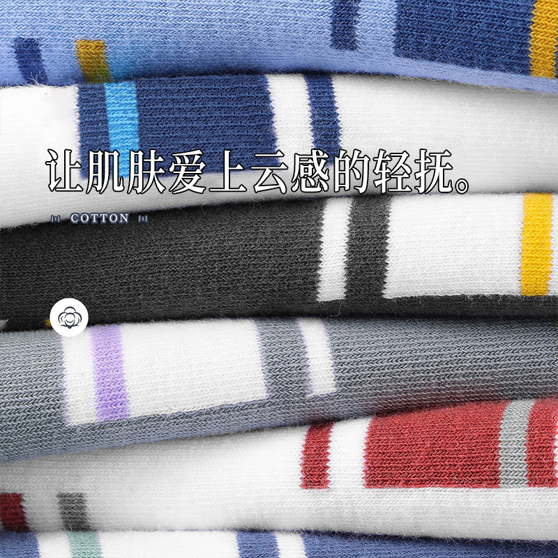 纯色棉袜防臭防脚气吸汗中筒袜男拼色条纹 运动款 袜子男士 秋冬季