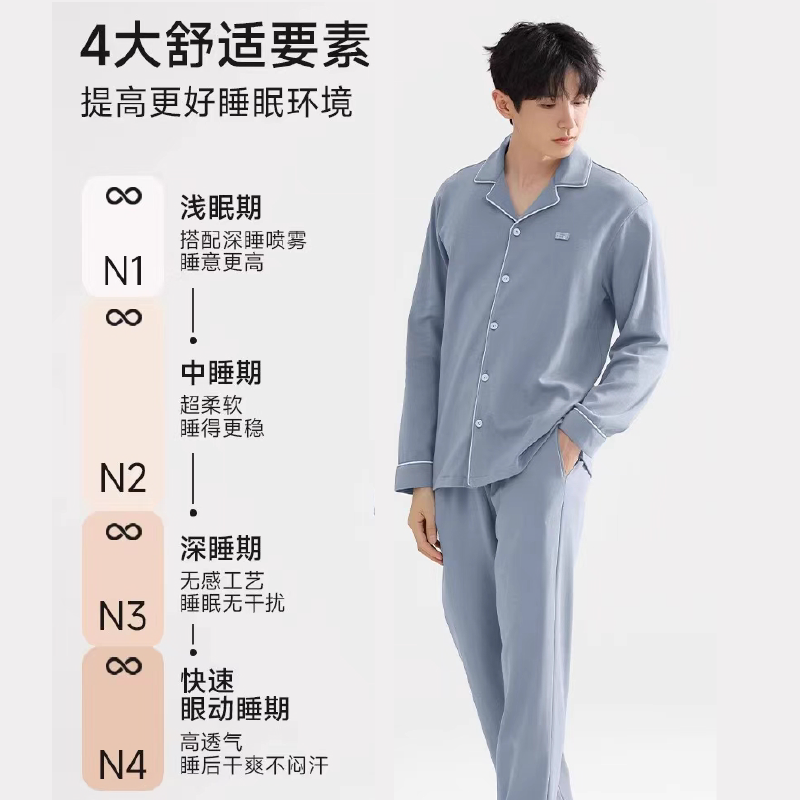 纯棉长袖 2025年新款 春款 男士 外穿简约风 睡衣男款 家居服套装 春秋季