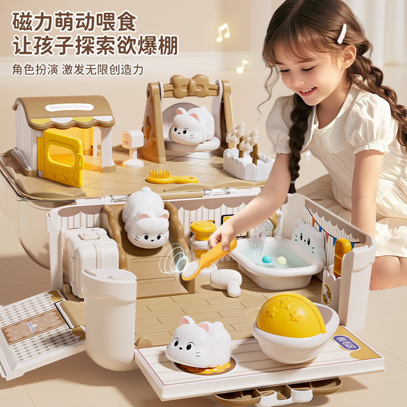 儿童玩具女孩子磁力过家家女童公主3猫咪娃娃屋4生日礼物6岁5宝宝