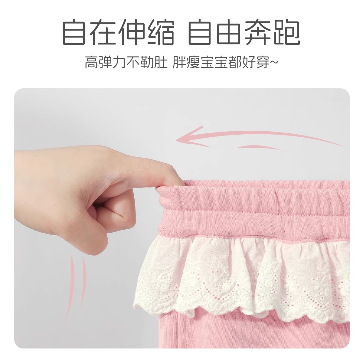 子秋季 黄色女宝蕾丝花边裤 儿童束脚裤 宝宝休闲长裤 2025新款 女童裤