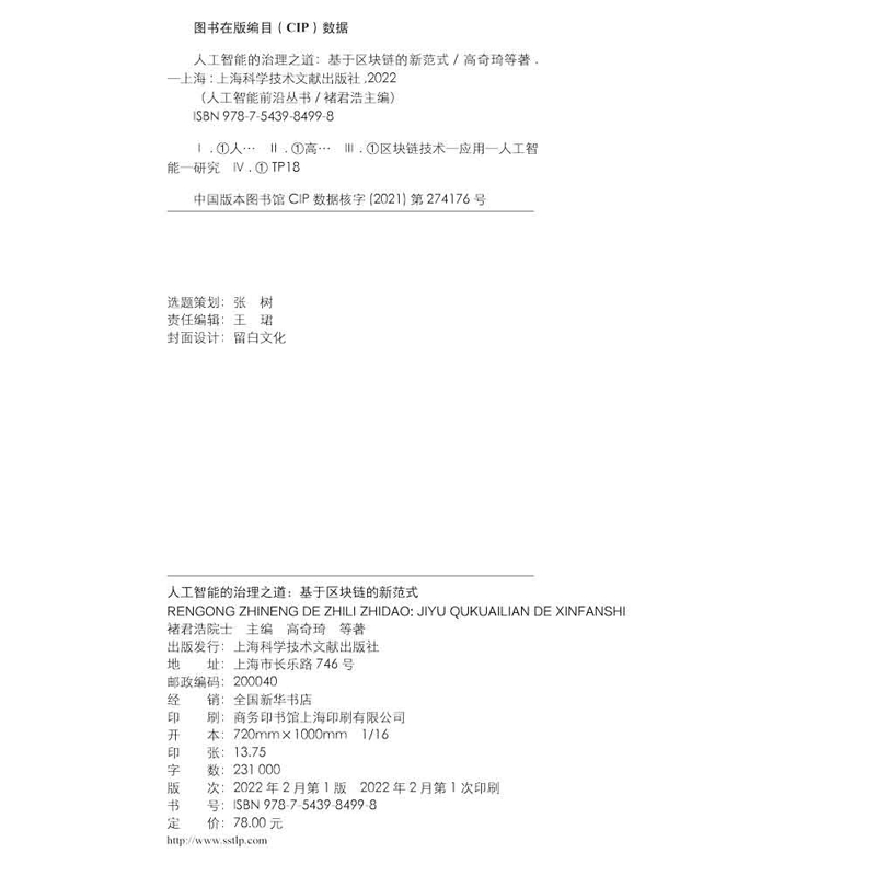 新范式 高奇琦 上海科学技术文献出版 治理之道 社 Z新学术成果集成 基于区块链 高教授对于人工智能区块链和治理 人工智能 等著