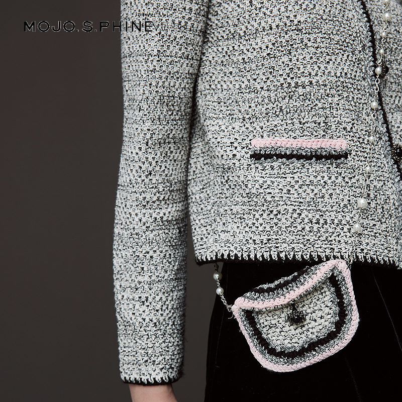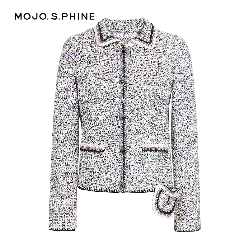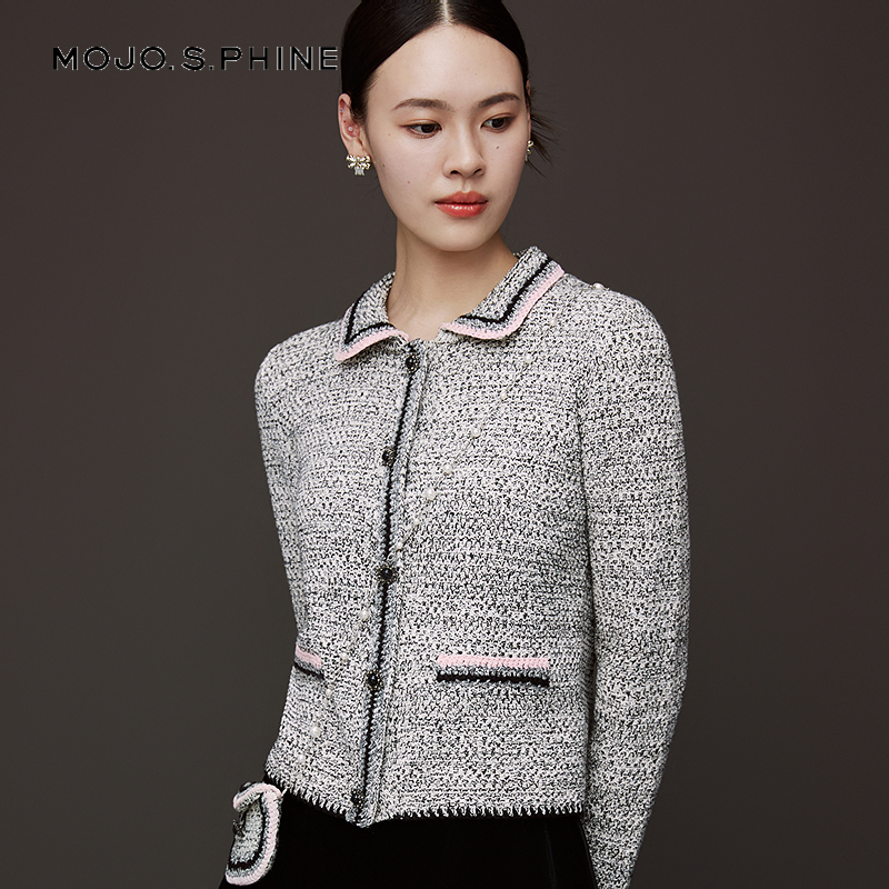 女黑白混色高级感开衫 优雅香风针织开衫 上衣 法式 MOJO莫佐2025新款